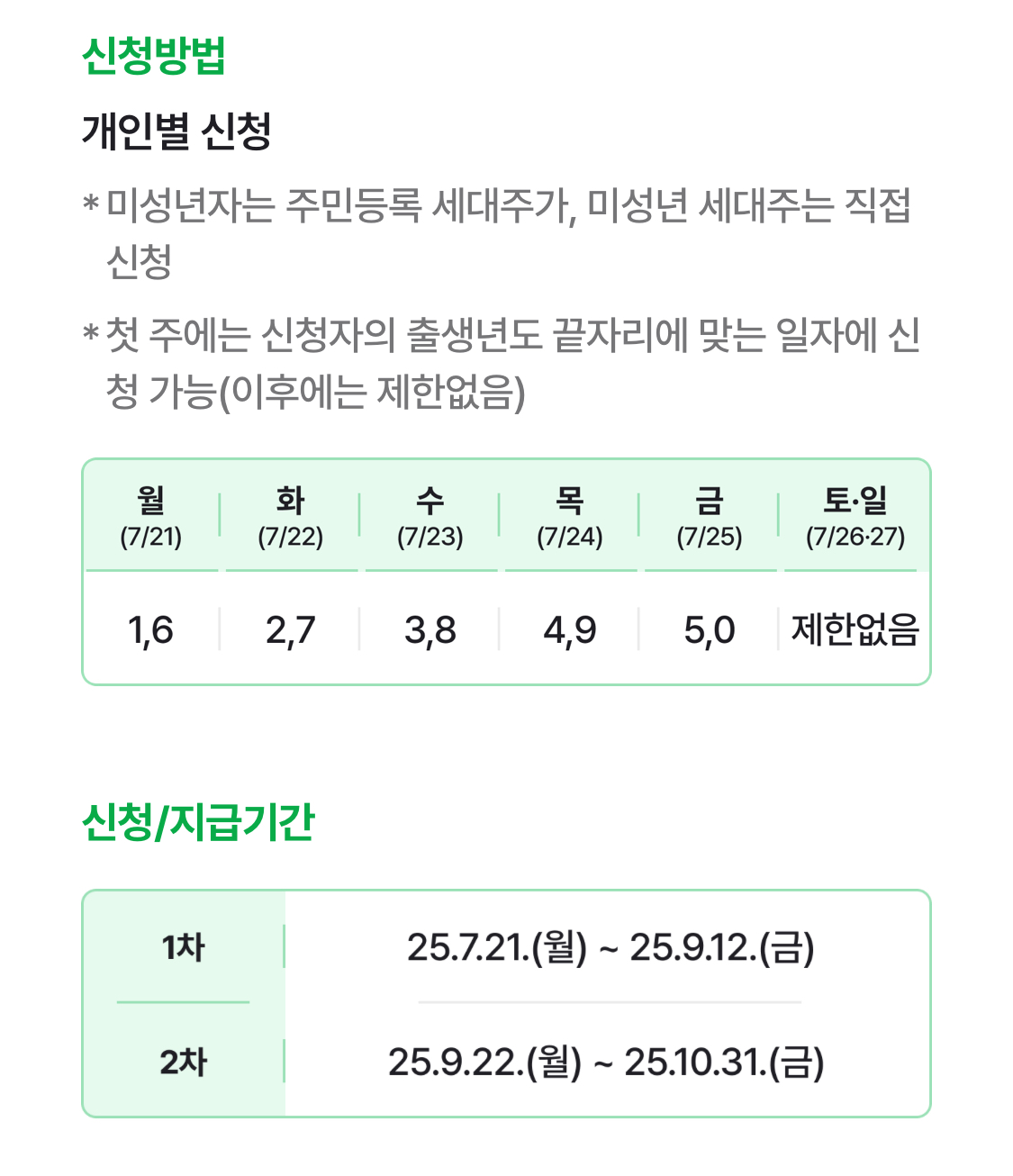 민생회복 소비쿠폰은 2차로 나누어 신청을 받고 있습니다.