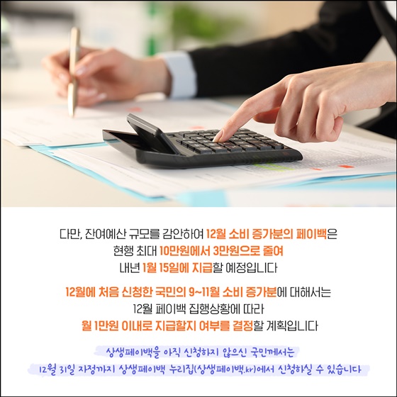 원래 11월까지만 진행하기로 했던 상생페이백이 12월까지 1개월 연장되었습니다.