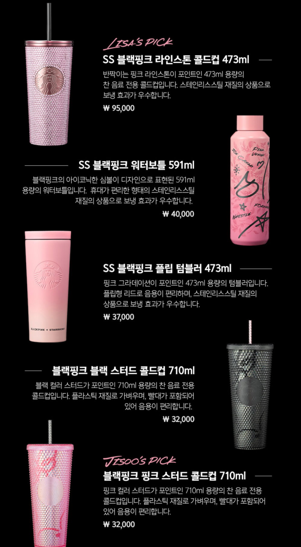블핑 팬 아니라도 너무 먹어보고 싶은 메뉴와 스타벅스 텀블러가 너무 많아요.