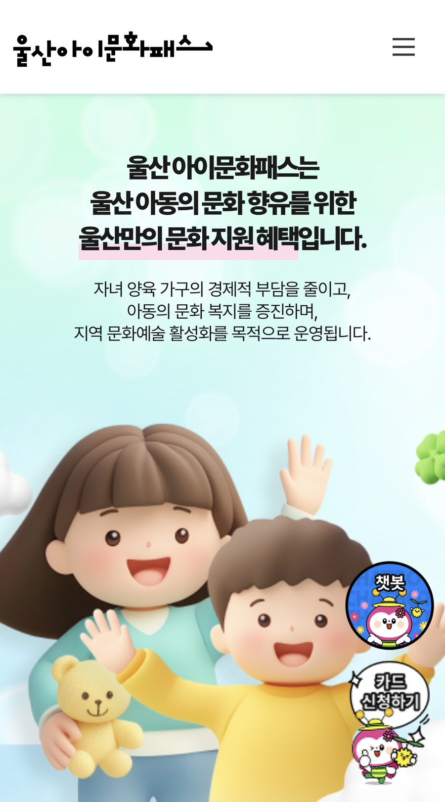 아동 1인당 연 10만원 선불카드 지급! 울산광역시에서 진행하는 아이문화패스 지원사업을 놓치지 않도록 핵심 내용을 한눈에 정리했습니다.
