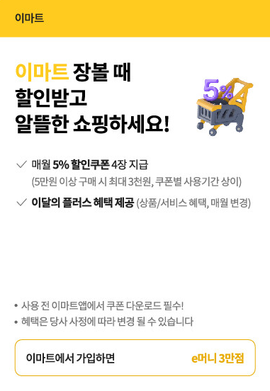 매월 5% 할인쿠폰 4장도 받을 수 있습니다.