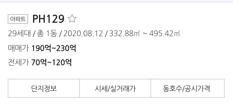| PH129 | 273.96 | 실거래가: 115 | 한강 조망, 호텔식 서비스 |