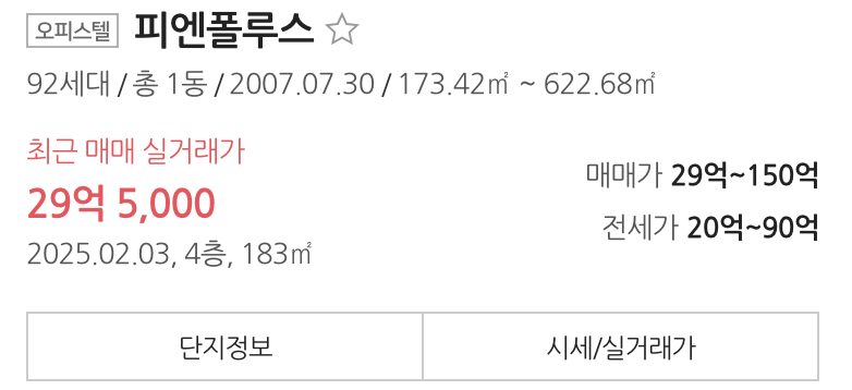 | 피엔폴루스 | 138 | 실거래가: 41 | 국내 최고가 오피스텔 |