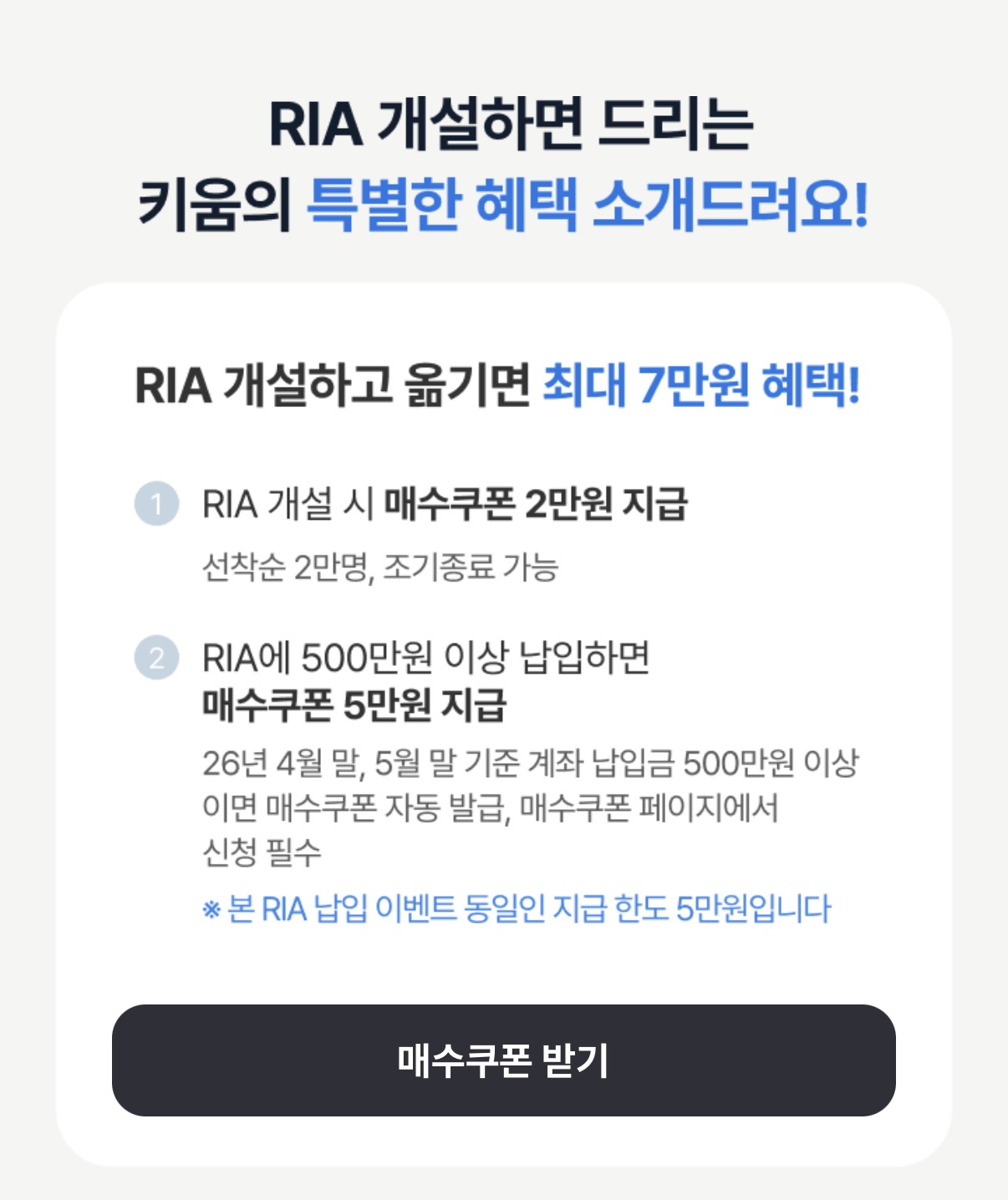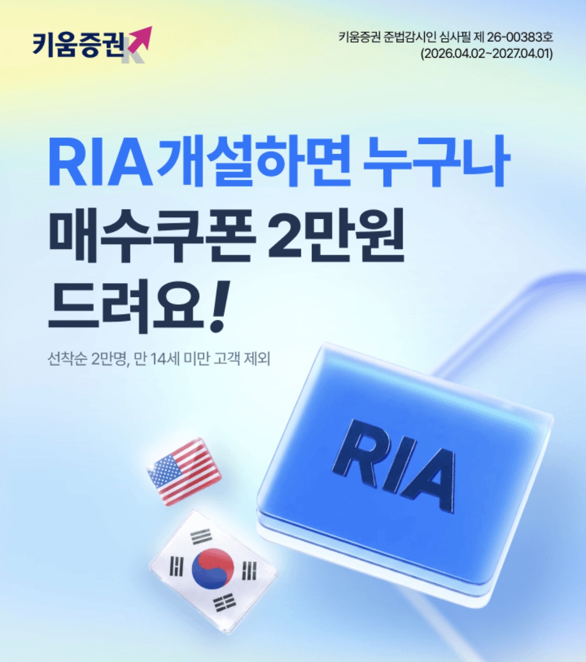 RIA 개설 시 매수쿠폰 2만원 지급 선착순 2만명,