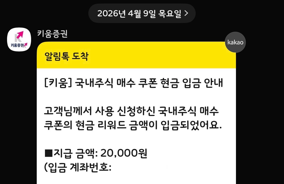 4. 다음날 3시30분 이후 현금 2만원 키움계좌에