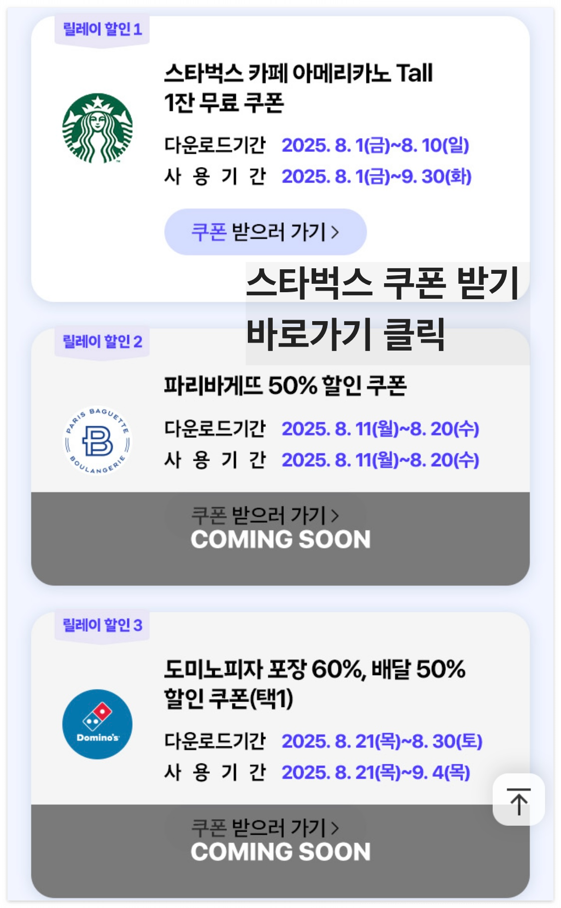 매달 3개 릴레이 할인혜택이 10일단위로 순차 제공 예정